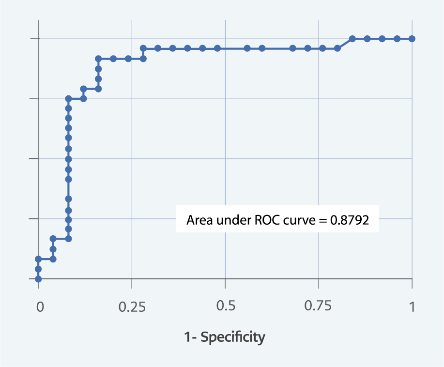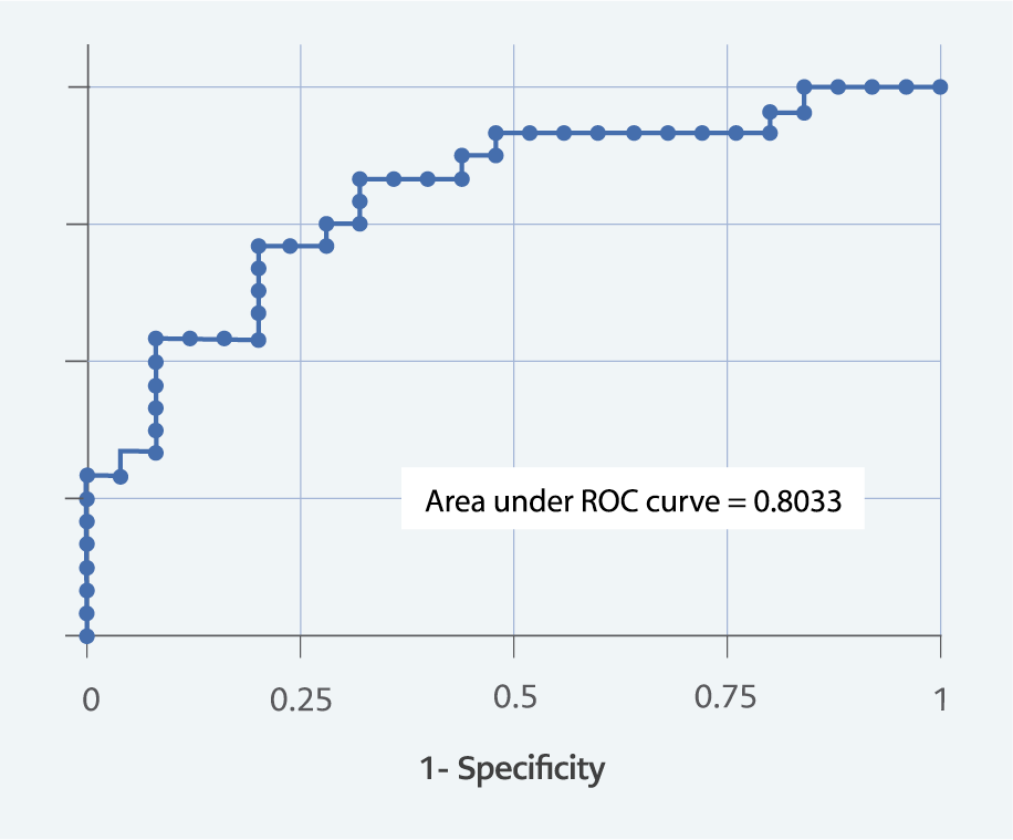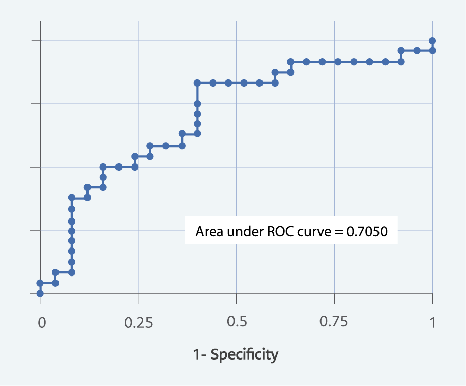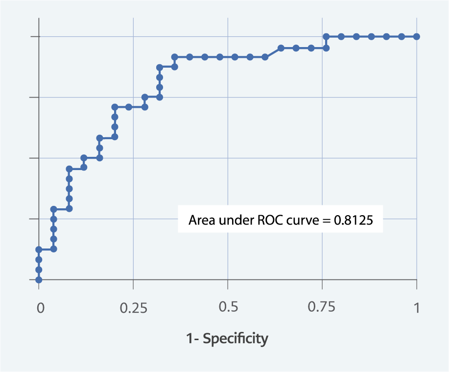 To evaluate the independence of risk factors associated with disease severity, a multivariate logistic regression model was constructed, including age and apoptosis biomarkers. The sensitivity, specificity, positive predictive value (PPV), and negative predictive value (NPV) of each test for distinguishing between mild and severe disease were calculated. Receiver operating characteristic (ROC) curves were generated, and the area under the curve (AUC) values were compared using the method of Hanley and McNeil.