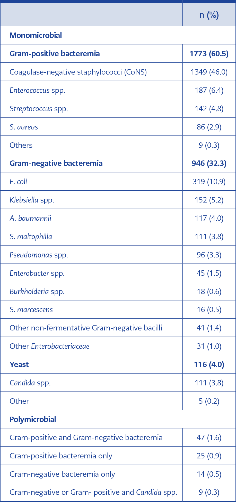 Table 1. Distribution of bacteria isolated from blood cultures (n=2930).