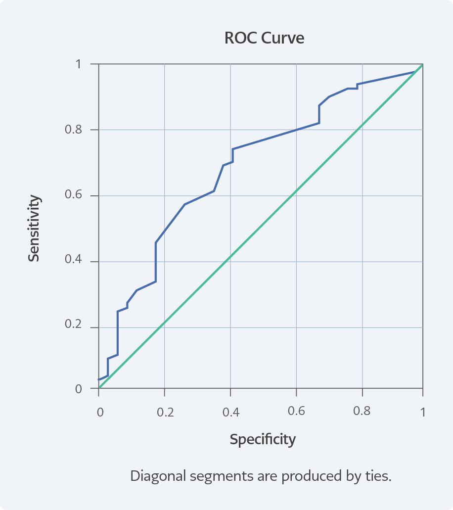 Figure 1. The ROC curve shows an AUC of 0.683 (p=0.002), indicating moderate accuracy of fever in predicting B. melitensis biovar 3 blood culture positivity. Using a cutoff value of 37.05°C, fever demonstrated a sensitivity of 68.4% and a specificity of 61.8% for B. melitensis biovar 3 bacteremia, with a positive predictive value (PPV) of 80.0% and a negative predictive value (NPV) of 46.7%. These findings indicate that, although fever is a moderate predictor of bacteremia, a substantial proportion of culture-positive cases also occur in afebrile patients at presentation.