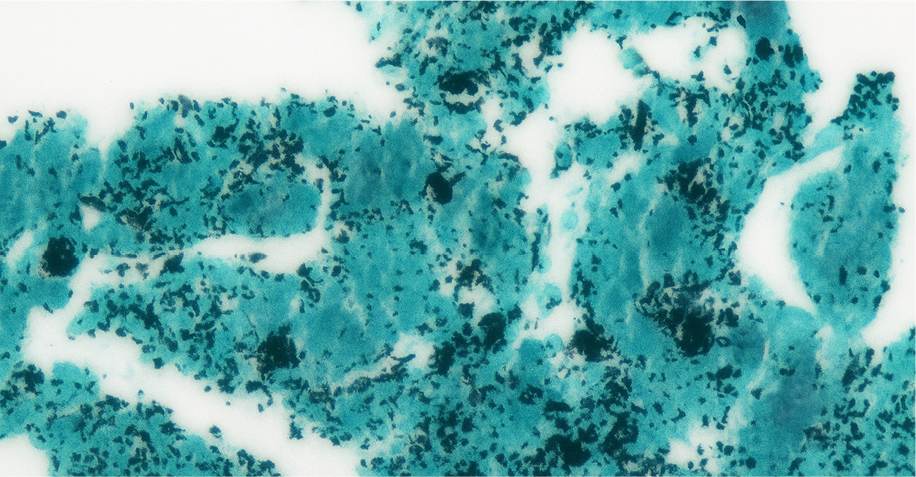 Grocott Methanamin Silver stain in the fibrinous mass;