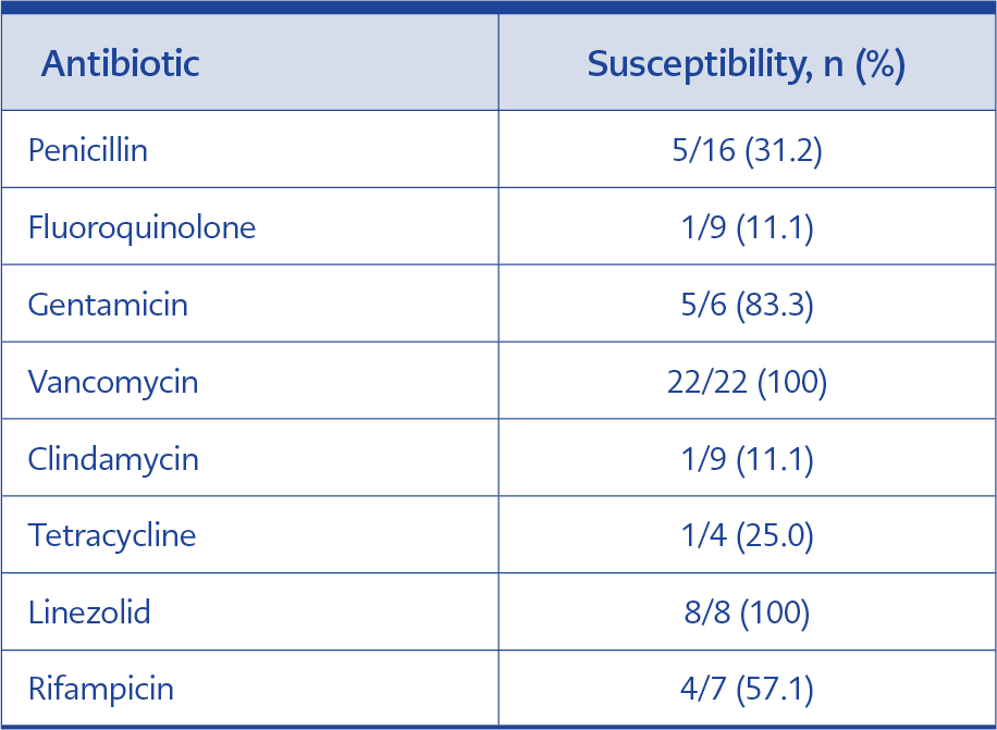 Table 3. Antibiotic susceptibility results of Corynebacterium striatum isolates.