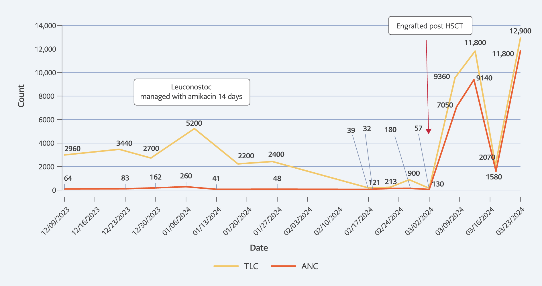 Figure 2. Timeline of infection in relation to neutrophil count.